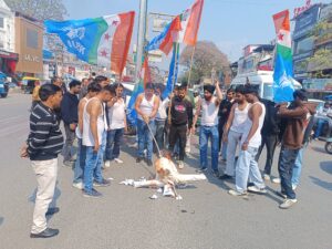 यूथ कांग्रेस के अध्यक्ष की गिरफ्तारी के विरोध में एनएसयूआई ने किया शर्टलेस प्रदर्शन