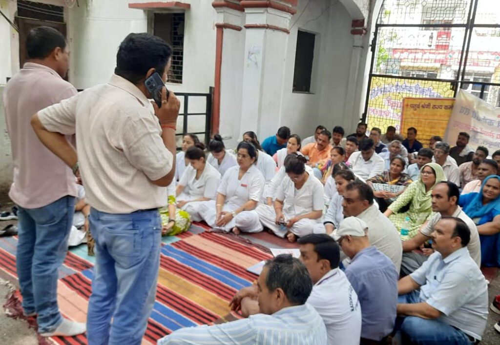 चतुर्थ वर्गीय राज्य कर्मचारी महासंघ के प्रदेश महामंत्री जंबू प्रसाद और आयुर्वेदिक यूनानी सेवाएं के प्रदेश महामंत्री केके तिवारी, फार्मेसिस्ट संघ की संध्या रतूड$ी और नर्सेज संघ की सुनीता तिवारी ने कहा कि कर्मचारियों ने ठान लिया है कि जब तक वेतन की बात नहीं होगी तब तक आंदोलन प्रदर्शन जारी रहेगा। प्रदेश महामंत्री जंबू प्रसाद ने कहा कि इस संबंध में मुख्य सचिव को पत्र लिखकर आेर उनसे मिलकर आयुर्वेद विश्वविद्यालय प्रशासन का डीडीआे कोड जारी किया जाए और तीनों परिसर निदेशकों को डीडीआे की पावर दी जाए, जिससे कर्मचारियों पर अतिरिक्त कार्य का बोझ नहीं होगा और सभी की समय से वेतन मिलेगा। उन्होंने घोषणा की जल्द ही विवि प्रशासन और शासन द्वारा वेतन जारी नहीं किया गया तो सभी विभागों के चतुर्थ श्रेणी कर्मचारी सड$कों पर उतरने को मजबूर होंगे। अध्यक्ष नर्सेज संघ स्मिता कोठियाल, आनंदी शर्मा, गुरुकुल उप शाखा के अध्यक्ष ताजबर सिंह, मंत्री मनीष पंवार ने कहा कि लगभग पांच माह होने को हैं लेकिन वेतन नहीं मिल रहा है। अब तालाबंदी और पूर्ण कार्यबहिष्कार होगा। कर्मचारी रैली, प्रदर्शन, पुतला दहन करेंगे। जिसका संपूर्ण उत्तरदायित्व विवि प्रशासन और शासन का होगा। प्रदेश अध्यक्ष दिनेश लखेड$ा, उपशाखा अध्यक्ष छत्रपाल सिंह, आयुर्वेदिक फार्मेसी परिषद के अध्यक्ष अशोक कुमार, जिला मंत्री राकेश भंवर, उपाध्यक्ष मूल चंद चौधरी ने कहा कि कर्मचारियों को अब आगे रणनीति और भी उग्र करनी होगी क्योंकि कर्मचारियों की स्थिति गंभीर है। कर्मचारियों ने बैंकों से लोन ले रखा है उनके घर पर बैंक द्वारा नोटिस चस्पा किए जा रहे हैं। कर्मचारियों के परिवार में गंभीर बीमारी के कारण उनके इलाज के लिए ब्याज पर रुपया लेकर इलाज कराया जा रहा है। धरना प्रदर्शन पूर्ण कार्यबहिष्कार में कर्मचारियों में प्रियंका आर्य, सुनीता तिवारी, उपासना, अशोक कुमार, नीमा, लविका, वंदना, अंजुम ममता पाल, कमलेश, ईशा, ब्रिजेश अंकित, सतीश, रोहन, पप्पू सहदेव, राजू कश्यप, विनोद कश्यप, ज्योति नेगी, मनीष पंवार, त्रिलोकी प्रसाद, अरूण कुमार, पुष्पा इत्यादि शामिल रहे।