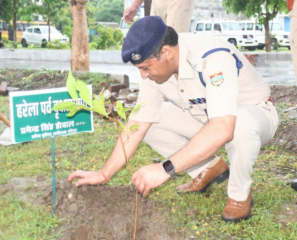 पुलिस लाइन रोशनाबाद में एसएसपी हरिद्वार की अगुवाई में झमाझम बारिश के बीच हरेला पर्व हर्षोल्लास के साथ मनाया गया। इस अवसर पर एसएसपी प्रमेन्द्र सिंह डोबाल द्वारा अन्य अधिकारियों व कर्मचारियों के साथ पुलिस लाइन रोशनाबाद में आयोजित कार्यक्रम के दौरान फलदार एवं छायादार वृक्ष का पौधारोपण किया। साथ ही अवगत कराया कि इस अवसर पर पुलिस लाइन एवं अन्य कार्यालय में एक-एक वृक्ष प्रत्येक अधिकारी एवं कर्मचारी अवश्य लगाएंगे।