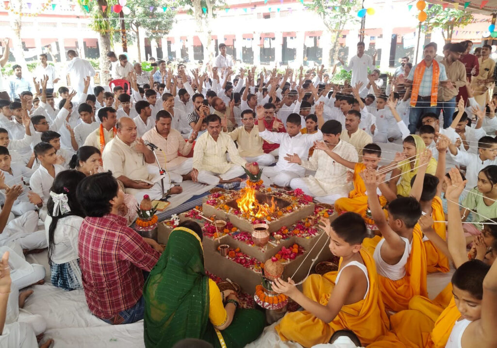 अमृत वाटिका परिसर में स्थित यज्ञशाला में नव प्रविष्ट ब्रह्मचारियों का उपनयन (यज्ञोपवीत) एवं वेदारम्भ संस्कार वैदिक विधि द्वारा वैदिक मंत्रोच्चार के साथ संपन्न हुआ। वृहद यज्ञ के ब्रह्मा डा. योगेश शा ी रहे। उन्होंने ब्रह्मचारियों को ऐतरेय उपनिषद के अनुसार आगे बढ़ने की प्रेरणा देते हुए अपने जीवन को आचार्यो के संरक्षण में श्रेष्ठ बनाने हेतु प्रेरणा देकर यज्ञ में आहुतियां प्रदान कराते हुए यज्ञोपवीत धारण कराकर वेदारम्भ संस्कार के महत्व को बताया। नगर निगम की मेयर किरण जैसल ने अभिभावकों को श्रावणी उपाकर्म पर्व की बधाई दी और कहा कि अपने—अपने बच्चों को गुरुकुल में भेजकर श्रेष्ठ कार्य किया है। गुरुकुल ही हमारी प्राचीन पद्धति है। रानीपुर विधायक आदेश चौहान ने कहा कि हमारी प्राचीन परम्परा ही हमें इतिहास से परिचित कराती है। गुरुकुल में नव प्रविष्ट छात्रों का उपनयन संस्कार देखकर मन अत्यन्त प्रसन्न हो गया। छात्रों ने अपने कार्यक्रमों से मन मोह लिया। विश्वविद्यालय के कुलपति प्रो. प्रभात कुमार ने कहा कि मुझे इसी गुरुकुल में कक्षा प्रथम से पढने का अवसर प्राप्त हुआ है। यहां पर सभी छात्रा एक दूसरे को परंपरागत प्राचीन काल से ही भाई जी कहते आ रहे है। गुरुकुल एक परिवार है। संगीत के साथ सांस्कृतिक कार्यक्रम धर्मेन्द्र आर्य के द्वारा सम्पन्न कराया गया। संस्त गीत तरुण, मयंक, कार्तिक, रोहित नकुल, युवराज, अनन्त, कृष्णा, आलोक, मुदित, उदित, निशांत ने प्रस्तुत किया तथा छोटे बच्चों की प्रस्तुति ने सभी का मन मोह लिया। कार्यक्रम का संचालन डा. योगेश ने किया तथा रक्षाबंधन का ऐतिहासिक महत्व पर अपने विचार प्रकट किये। इस अवसर पर गुरुकुल के सभी शिक्षक, आश्रम अध्यक्ष, अधिष्ठाता एवं सभी विभागों के शिक्षकेत्तर कर्मचारी उपस्थित रहे।