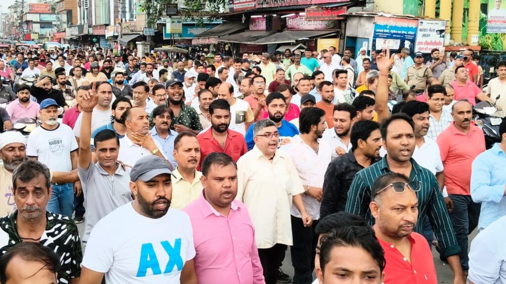 -कारिडोर, बस अड्डा व जान्हवी मार्किट मामले को लेकर हजारो व्यापारी सडक पर उतरे