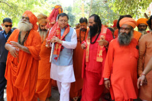 श्री महंत हरी गिरी महाराज ने उत्तराखंड सरकार द्वारा इस पवित्र छड$ी यात्रा को राजकीय यात्रा घोषित किए जाने का आभार प्रकट करते हुए कहा कि उत्तराखंड में पलायन की समस्या तभी समाप्त होगी जब सीमांत वर्ती दुर्गम क्षेत्रों में उच्च शिक्षा संस्थान तथा उच्च चिकित्सालय व यातायात की सुविधा उपलब्ध होगी। इस पवित्र छड$ी के माध्यम से इस संदर्भ में नागरिकों को जागरूक करने का भी कार्य किया जा रहा है। आचार्य महामंडलेश्वर कैलाश आनंद गिरि ने मुख्यमंत्री के द्वारा किए गए कार्यों की प्रशंसा करते हुए उनका अभिनंदन किया तथा संतों की आेर से उन्हें आशीर्वाद प्रदान किया। कार्यक्रम का संचालन कर रहे श्री महंत रवींद्र पुरी महाराज, श्री महंत हरी गिरी महाराज ने शाल आेढ$ाकर मुख्यमंत्री का अभिनंदन किया। मुख्यमंत्री धामी ने भी मंचासीन संतों का माल्यार्पण व शाल आेढ$ा कर आशीर्वाद प्राप्त किया। इस अवसर पर महामंडलेश्वर ललित आनंद गिरि महाराज, महामंडलेश्वर परबोधानंद, महा मंडलेश्वर महेश आनंद गिरि महाराज, महामंडलेश्वर दर्शन भारती ,महामंत्री श्री महंत महेश पुरी श्री महंत शैलेंद्र गिरी सचिव श्री महंत आेम भारती श्रीमहंत कंचन गिरि श्री महंत महाकाल गिरी श्री महंत आदित्य गिरी स्थानीय विधायक मदन कौशिक भाजपा जिला अध्यक्ष आशुतोष शर्मा सहित सैकड$ो साधु संत उपस्थित थे।