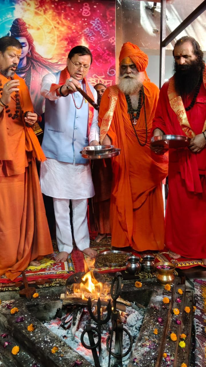 मुख्यमंत्री पुष्कर सिंह धामी ने माया देवी मंदिर में पूजा अर्चना कर श्री पंच दश नाम जूना अखाड$े द्वारा संचालित पवित्र छड$ी यात्रा का शुभारंभ कि या।