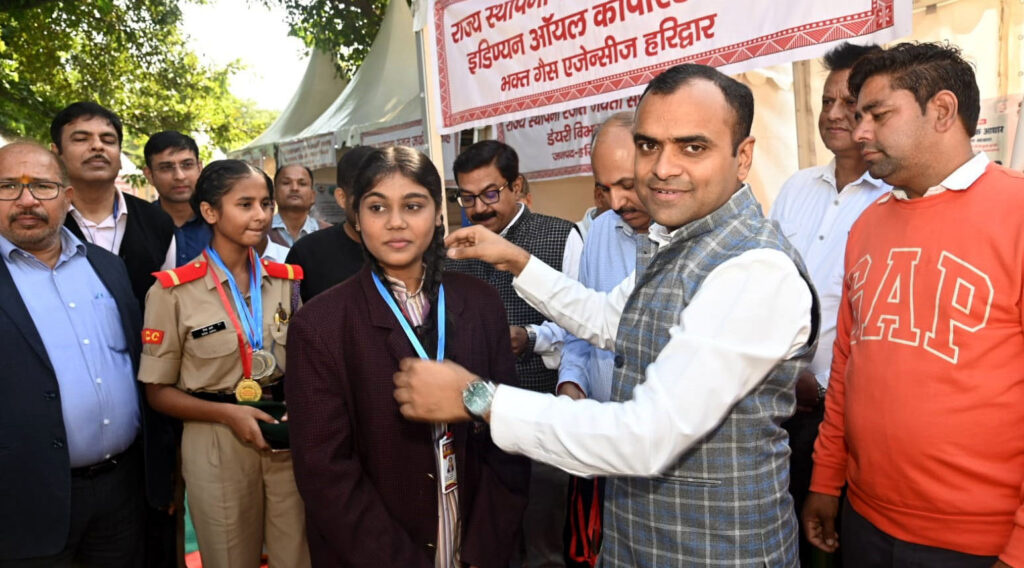 इस अवसर पर स्वतंत्रता संग्राम सेनानी भारत भूषण, समाज सेवी विशाल गर्ग, अपर जिलाधिकारी फिंचाराम चौहान, जिला विकास अधिकारी वेद प्रकाश, मुख्य चिकित्साधिकारी ड$आरके सिंह, मुख्य शिक्षाधिकारी आशुतोष भण्डारी, जिला पंचायतराज अधिकारी अतुल प्रताप सिंह, मुख्य षि अधिकारी गोपाल सिंह भण्डारी, मुख्य उद्यान अधिकारी तेजपाल सिंह, जिला अर्थ एवं नलिनी ध्यानी, सहायक निदेशक मत्स्य गरिमा मिश्रा, परियोजना प्रबन्धक उरेडा गंभीर सिंह बिष्ट सहित जनप्रतिनिधि, विद्यार्थी आदि मौजूद रहे।-—-—-— उत्तराखण्ड स्थापना दिवस की रजत जयंती के अवसर पर इमैक समिति ने नमामि गंगे, चंडी घाट पर प्रत्येक दिन चलने वाली मस्ती की पाठशालाष् में गरीब बच्चों संग स्थापना दिवस मनाया। बच्चों को उत्तराखण्ड स्थापना दिवस और उत्तराखण्ड के इतिहास के बारे में भी बताया गया। साथ ही समस्त मित्र जनों के सहयोग से पाठशाला में शिक्षिका के रूप में बच्चों को पढ$ाने वाली रेखा की बड़ी बहन ज्योति के विवाह के लिए मड।ब्भ् समिति के प्रयासों से 21000 रूपये की धनराशि का एकत्रीकरण हुआ था। एकत्रित धनराशि को आज सभी के साथ मिलकर ज्योति की विधवा माता बिमलेश जी जोकि घाट पर ही एक छोटी सी खिलौने की रेड$ी लगाकर अपनी तीन बेटियों के साथ परिवार का भरण पोषण करती हैं को सभी की तरफ से भेंट स्वरूप प्रदान कर दिया गया। आस्था, कविता गोयल, मौसमी गोयल और विपिन शर्मा द्वारा उनके द्वारा लाए गए उपहार भी भेंट किए गए। इस सामूहिक सहयोग के लिए समिति सभी का हार्दिक आभार व्यक्त करती हुए समस्त साथियों के लिए मंगलकामनाएं प्रेषित करती है।
