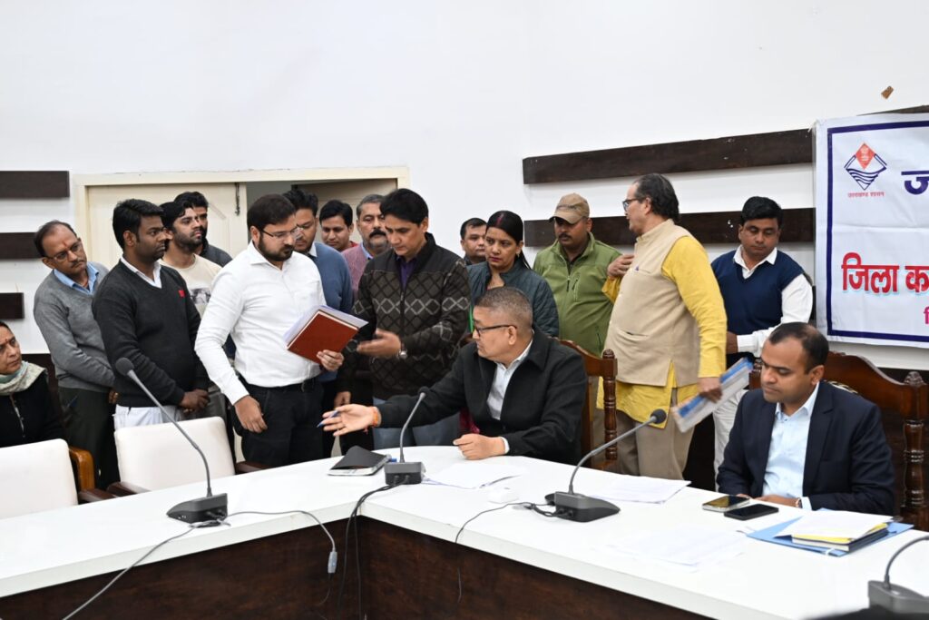 बैठक मे अपर जिलाधिकारी दीपेंद्र सिंह नेगी, अपर जिलाधिकारी पी आर चौहान,जिला विकास अधिकारी वेद प्रकाश,सहायक परियोजना निर्देशक नलिनीत घिल्डियाल, जिला पंचायतराज अधिकारी अतुल प्रताप सिंह जिला पर्यटन अधिकारी सुशील नौटियाल,प्रोजेक्ट मैनेजर पेयजल निगम (गंगा)मीनाक्षी मित्तल,जिला अर्थ संख्या आधिकारी नलिनी ध्यानी,मुख्य कृषि अधिकारी गोपाल सिंह भण्डारी,जिला क्रीड़ा अधिकारी शबाली गुरूंग, परियोजना निर्देशक उरेडा वाई एस बिष्ट सहित जिला स्तरीय सम्बन्धित अधिकारी एवं विभिन्न क्षेत्रों से आए फरियादी मौजूद रहे।