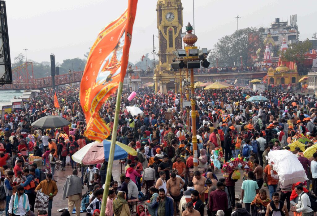 haridwar- maha shivratre par bagwan shiv ko cadane ka liya ganga jal la jane ka liya hari ki pari par kawadiyo ke beed. photo-sandeep sharma haridwar phon-09837410381